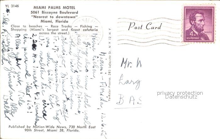 72349727 old postcard Miami Florida Miami Palms Hotel postalisch gelaufen Erhaltung siehe scans KatCode: 14140110000000
