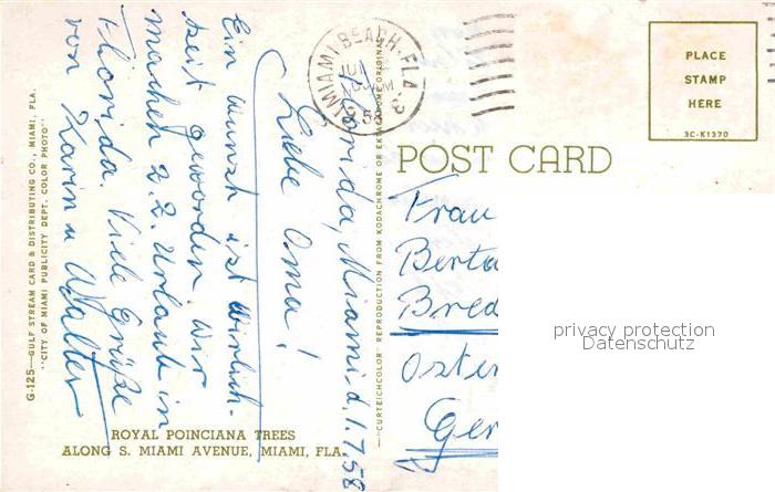 72614772 Miami Florida Royal Poinciana Trees along S Miami Avenue postalisch nicht gelaufen Erhaltung siehe scans [WerneD78] KatCode: 14140110000000