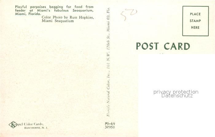 73123491 Miami Florida Seaquarium Delphine postalisch nicht gelaufen Erhaltung siehe scans [FriedD77] KatCode: 14140110000000