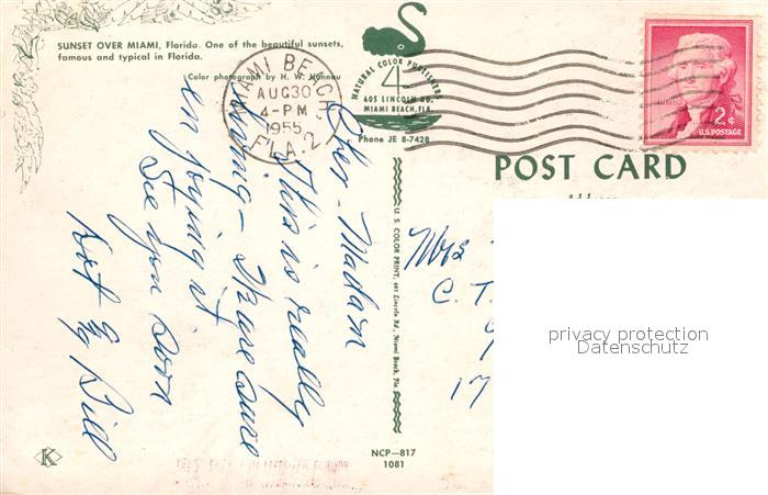 72956963 old postcard Miami Florida Sunset over the oceanfront postalisch gelaufen Erhaltung siehe scans [FriedD77] KatCode: 14140110000000