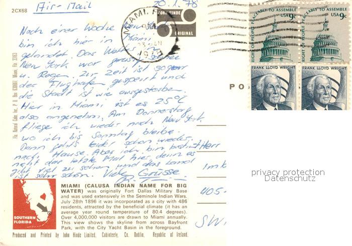 73300615 old postcard Miami Florida Tropical Skyline Harbour postalisch gelaufen Erhaltung siehe scans [FriedD77] KatCode: 14140110000000