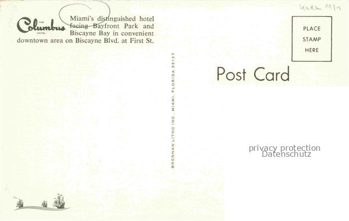 74024222 MIAMI Florida USA Hotel Columbus postalisch nicht gelaufen Erhaltung siehe scans [FriedD77] KatCode: 14140110000000