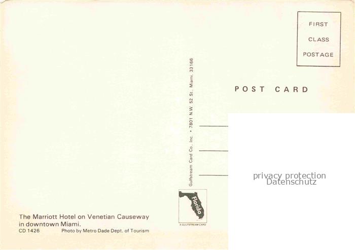 74092314 MIAMI Florida USA Marriott Hotel Venetian Caseway postalisch nicht gelaufen Erhaltung siehe scans [IrynaD87] KatCode: 14140110000000