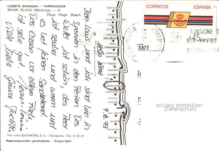 old postcard Miami Playa Costa Dorada Tarragona postalisch gelaufen Erhaltung siehe scans