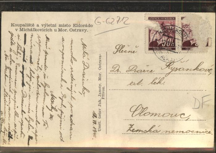 40820160 Michalkovicich ? Mor. Ostravy Schwimmbad postalisch gelaufen Alte Ansichtskarte Postkarte old postcard Katcode 11520