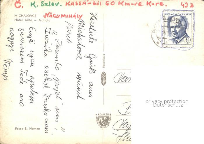 old postcard Michalovce Hotel Jalta postalisch gelaufen Erhaltung siehe scans