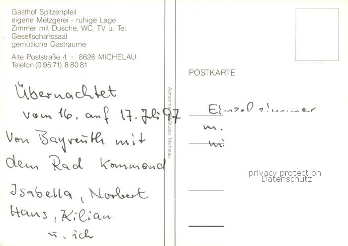 73846089 Michelau Oberfranken Gasthof Metzgerei Spitzenpfeil postalisch nicht gelaufen Erhaltung siehe scans [WerneD78] KatCode: 11110009478145