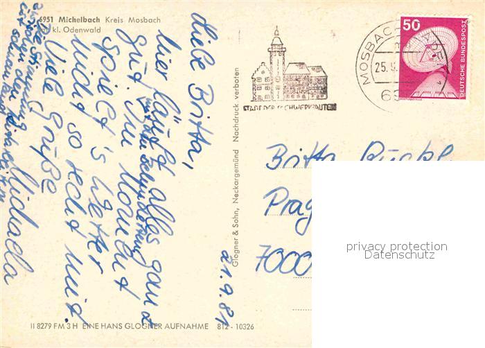 72835145 alte Postkarte Michelbach Aglasterhausen postalisch gelaufen Erhaltung siehe scans [NatalD47] KatCode: 11110008225002