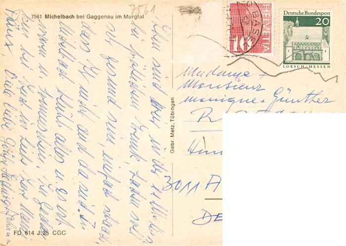 73902652 alte Postkarte Michelbach Gaggenau Strassenpartie Panorama Schwimmbad Pavillon postalisch gelaufen Erhaltung siehe scans [FriedD77] KatCode: 11110008216015