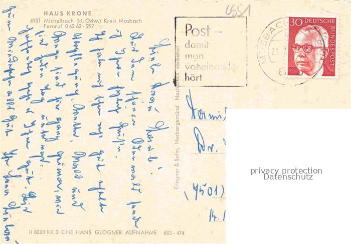 74048342 alte Postkarte Michelbach Mosbach Odenwald Panorama Gasthaus Haus Krone Garten postalisch gelaufen Erhaltung siehe scans [FriedD77] KatCode: 11110008225058