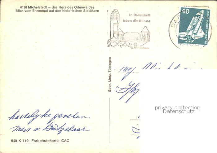 72431298 alte Postkarte Michelstadt Blick vom Ehrenmal postalisch gelaufen Erhaltung siehe scans KatCode: 11110006437011
