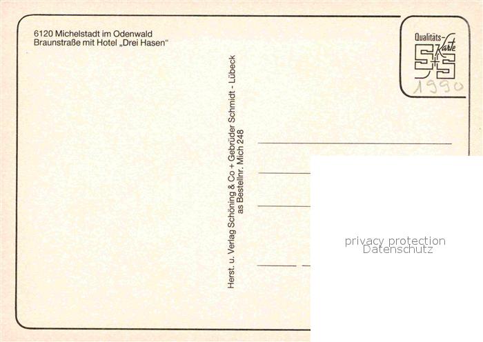 72909259 Michelstadt Braunstrasse Hotel Drei Hasen postalisch nicht gelaufen Erhaltung siehe scans [NatalD47] KatCode: 11110006437011