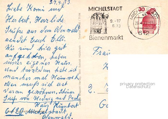 73611556 alte Postkarte Michelstadt Brunnen Fachwerkhaeuser Ortsansichten postalisch gelaufen Erhaltung siehe scans [WerneD78] KatCode: 11110006437011