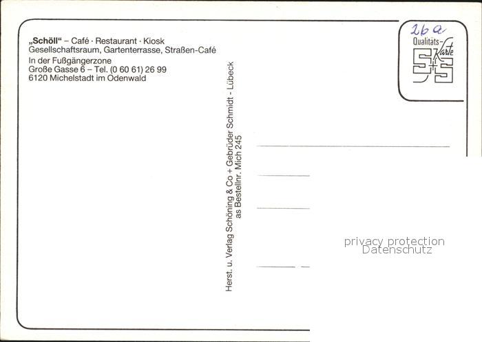 72495526 Michelstadt Cafe Restaurant Scholl postalisch nicht gelaufen Erhaltung siehe scans KatCode: 11110006437011