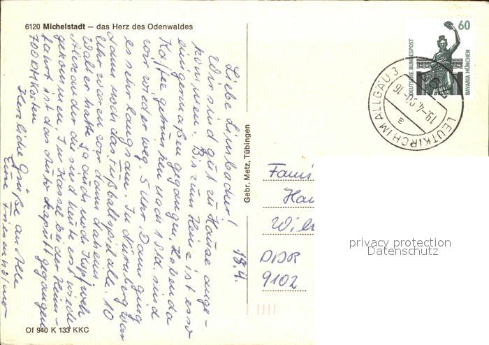 72568257 alte Postkarte Michelstadt Diebstrum Marktplatz Rathaus Stadtgarten postalisch gelaufen Erhaltung siehe scans [LiesaD40] KatCode: 11110006437011