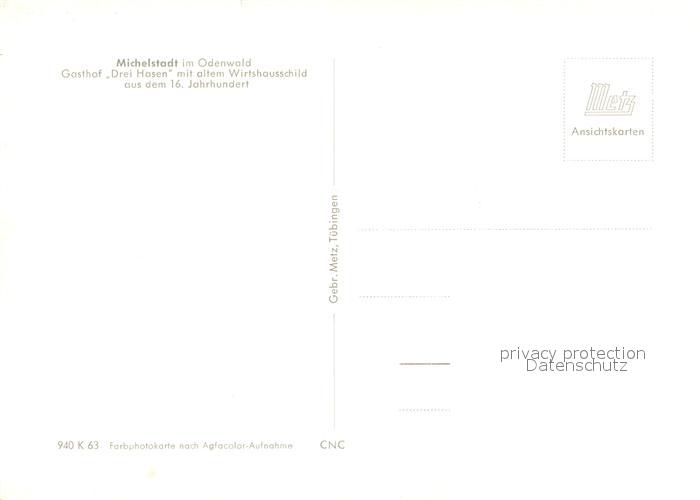 73721035 Michelstadt Gasthof Drei Hasen mit altem Wirtshausschild postalisch nicht gelaufen Erhaltung siehe scans [WerneD78] KatCode: 11110006437011