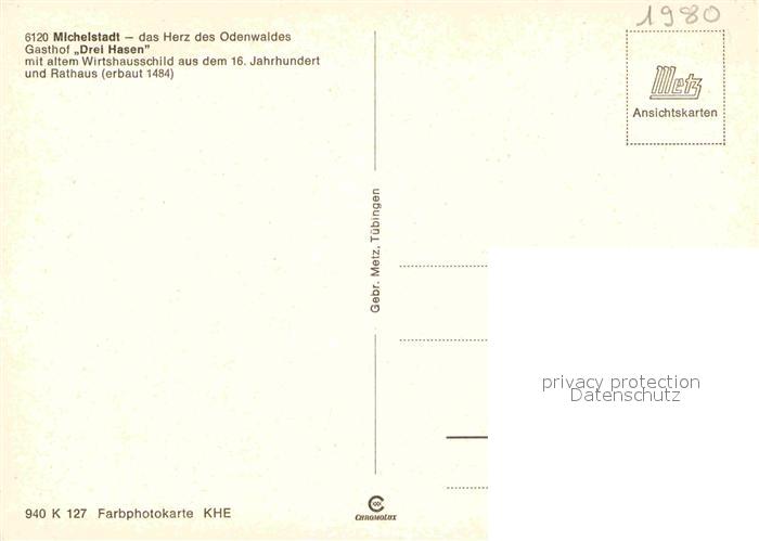 72909260 Michelstadt Gasthof Drei Hasen Rathaus postalisch nicht gelaufen Erhaltung siehe scans [NatalD47] KatCode: 11110006437011