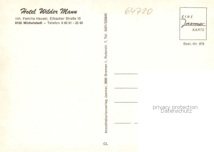 73867092 Michelstadt Hotel Wilder Mann Fremdenzimmer Ortszentrum postalisch nicht gelaufen Erhaltung siehe scans [FriedD77] KatCode: 11110006437011