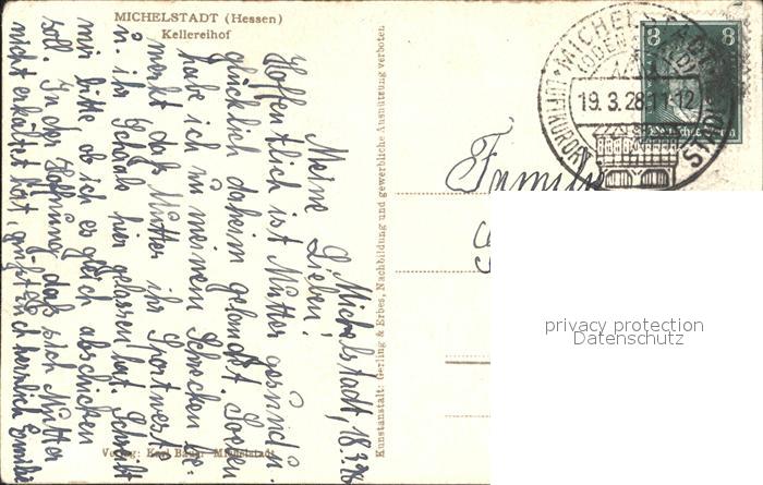 72104629 alte Postkarte Michelstadt Kellereihof postalisch gelaufen Erhaltung siehe scans KatCode: 11110006437011