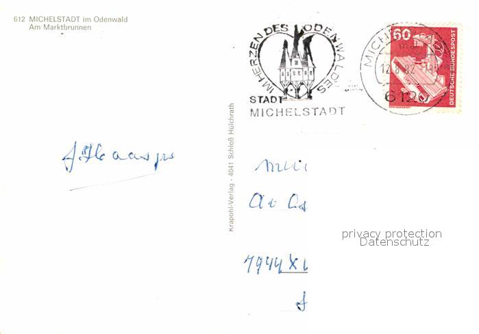 72782011 alte Postkarte Michelstadt Marktbrunnen Fachwerkhaeuser postalisch gelaufen Erhaltung siehe scans [WerneD78] KatCode: 11110006437011