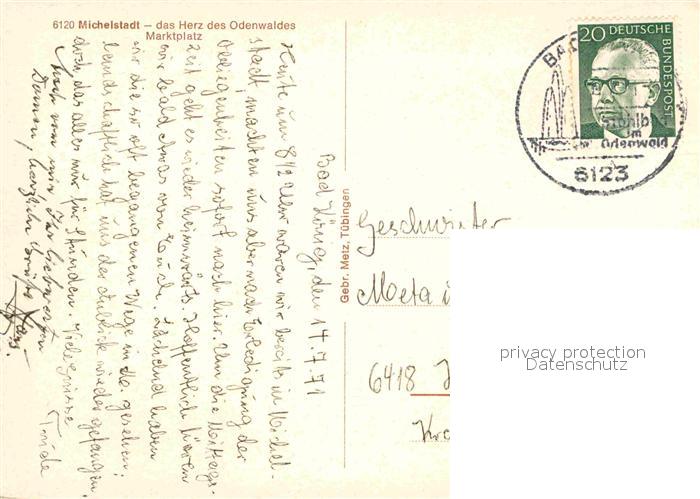 72803575 alte Postkarte Michelstadt Marktplatz Brunnen Rathaus Fachwerkhaus postalisch gelaufen Erhaltung siehe scans [FriedD77] KatCode: 11110006437011
