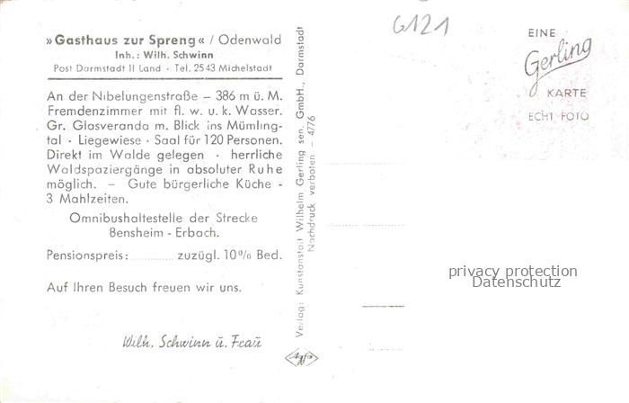 74101564 Michelstadt Odenwald Hessen Gasthaus Zur Spreng Blick ins Muemlingtal postalisch nicht gelaufen Erhaltung siehe scans [WerneD78] KatCode: 11110006437011