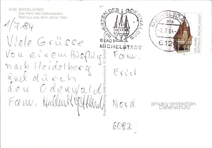 72431517 alte Postkarte Michelstadt Rathaus postalisch gelaufen Erhaltung siehe scans KatCode: 11110006437011