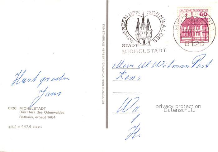 72941360 alte Postkarte Michelstadt Rathaus postalisch gelaufen Erhaltung siehe scans [PaolaD17] KatCode: 11110006437011