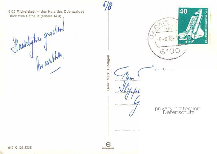 72615526 alte Postkarte Michelstadt Rathaus Brunnen postalisch gelaufen Erhaltung siehe scans [WerneD78] KatCode: 11110006437011