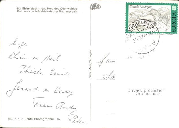 72024387 alte Postkarte Michelstadt Rathaus Saal postalisch gelaufen Erhaltung siehe scans KatCode: 11110006437011