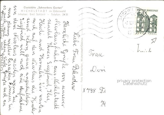 72104723 alte Postkarte Michelstadt Rathaus Schmerkers Garten Nebenzimmer Saal Bar postalisch gelaufen Erhaltung siehe scans KatCode: 11110006437011