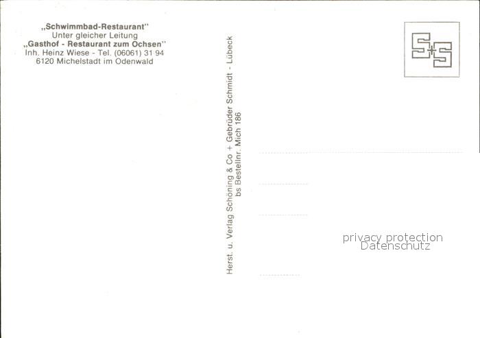 72209210 Michelstadt Schwimmbad Restaurant Gasthof Restaurant zum Ochsen Terrasse Gastraum postalisch nicht gelaufen Erhaltung siehe scans KatCode: 11110006437011