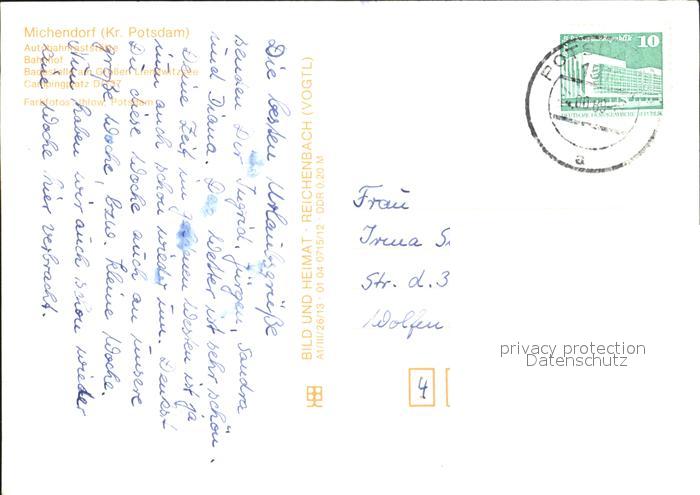 72371467 alte Postkarte Michendorf Autobahnraststaette Bahnhof Badestelle Campingplatz postalisch gelaufen Erhaltung siehe scans KatCode: 11110012069397