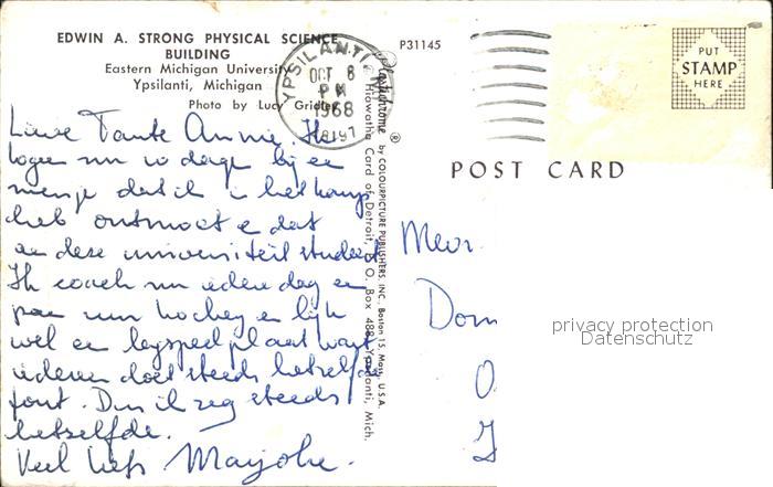 72498471 old postcard Michigan Edwin A. strong physical science building Eastern Michigan University Ypsilanti postalisch gelaufen Erhaltung siehe scans KatCode: 14140360000000