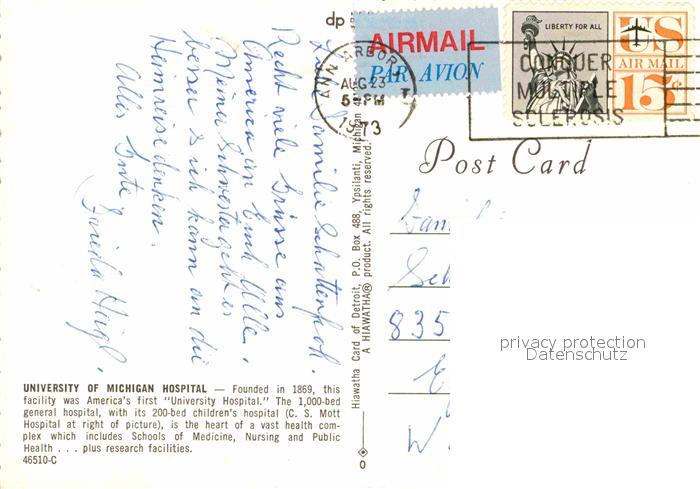 72904486 old postcard Michigan Fliegeraufnahme University of Michigan Hospital postalisch gelaufen Erhaltung siehe scans [LiesaD40] KatCode: 14140360000000