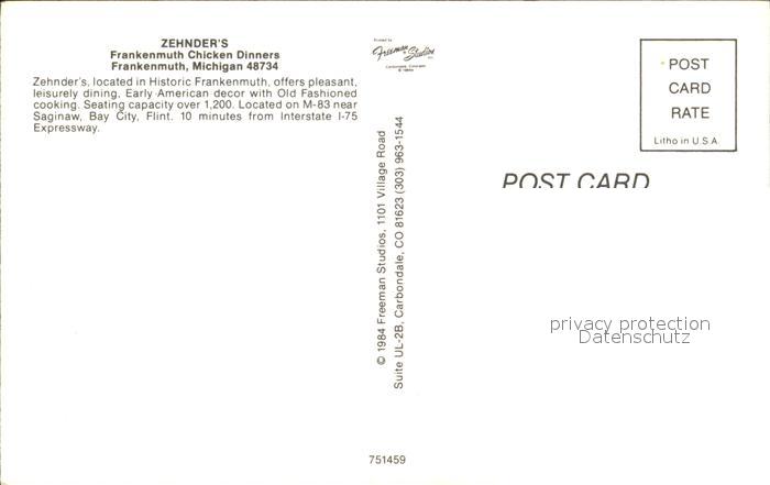 72461522 Michigan Zehnders Frankenmuth Chicken Dinners postalisch nicht gelaufen Erhaltung siehe scans KatCode: 14140360000000