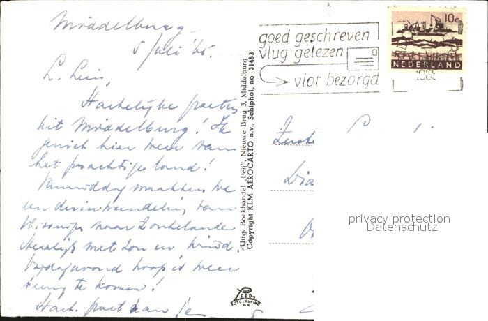 old postcard Middelburg Zeeland Abdijturm Lange Jan Fliegeraufnahme postalisch gelaufen Erhaltung siehe scans