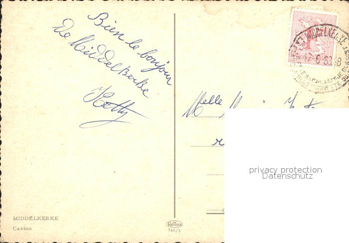 72290933 carte postale Middelkerke Casino postalisch gelaufen Erhaltung siehe scans KatCode: 11070035000431