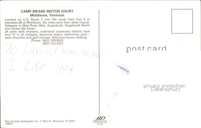 Middlesex Camp Meade Motor Court Swimmingpool postalisch nicht gelaufen Erhaltung siehe scans