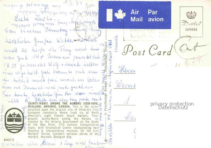 74091678 old postcard Midland Ontario Canada Saint Marie among the Hurons postalisch gelaufen Erhaltung siehe scans [IrynaD87] KatCode: 14110