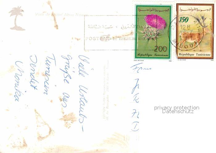 alte Postkarte Midoun Hotel Abou Nawas Swimmingpool Strand postalisch gelaufen Erhaltung siehe scans [WerneD78]