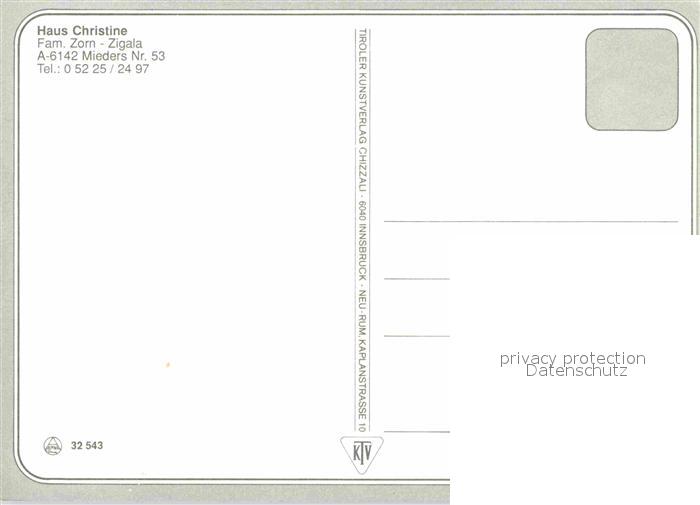 72711646 Mieders Tirol Gaestehaus Pension Haus Christine postalisch nicht gelaufen Erhaltung siehe scans [FriedD77] KatCode: 11390332070328