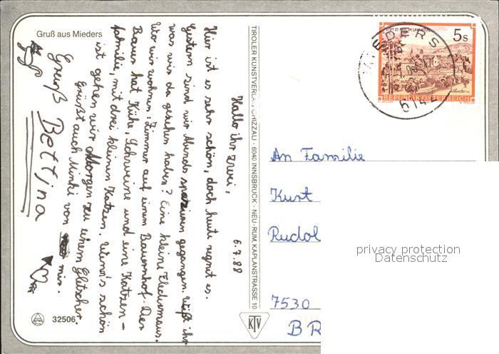 72454727 alte Postkarte Mieders Tirol Hotel Total Kirche Panorama Wegekreuz postalisch gelaufen Erhaltung siehe scans KatCode: 11390332070328