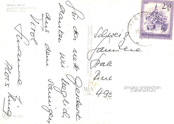 73018729 alte Postkarte Mieders Tirol Serles postalisch gelaufen Erhaltung siehe scans [NatalD47] KatCode: 11390332070328