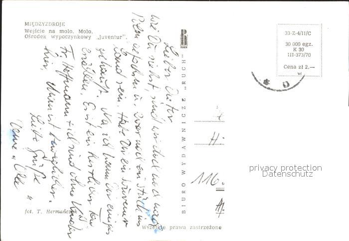 old postcard Miedzyzdroje Wejscie na molo Molo Osrodek wypoczynkowy Juventur postalisch gelaufen Erhaltung siehe scans