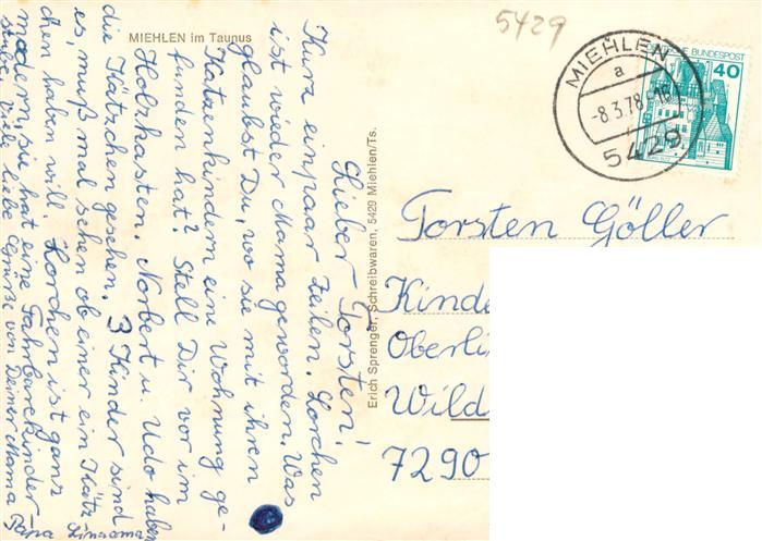 73872286 alte Postkarte Miehlen Taunus Fliegeraufnahme postalisch gelaufen Erhaltung siehe scans [FriedD77] KatCode: 11110007141085