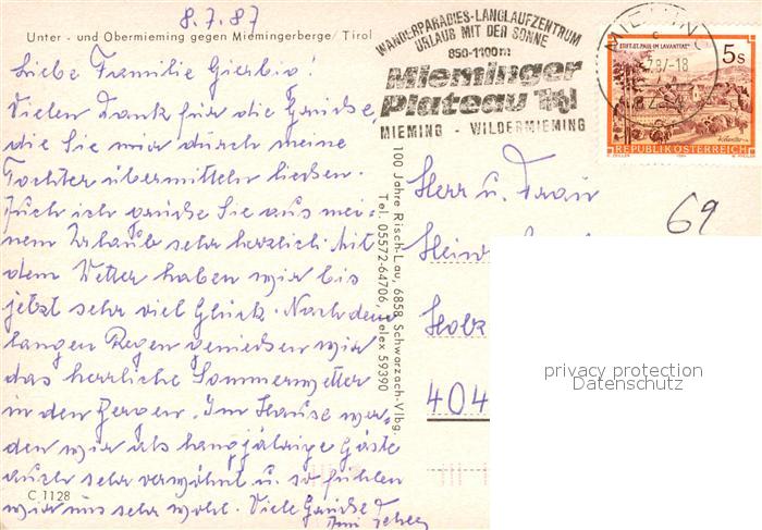 73339418 alte Postkarte Mieming Fliegeraufnahme Mieminger-Plateau postalisch gelaufen Erhaltung siehe scans [LiesaD40] KatCode: 11390334070209