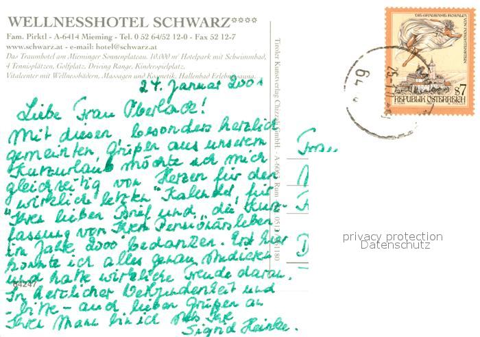 13235998 alte Postkarte Mieming Wellnesshotel Schwarz Winterlandschaft Alpen postalisch gelaufen Erhaltung siehe scans [FriedD77] KatCode: 11390334070209