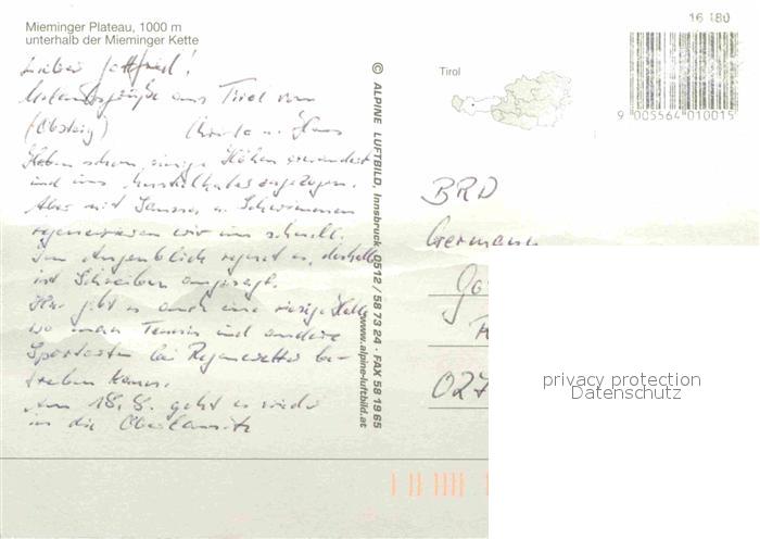 72716603 Mieminger Plateau Fliegeraufnahme Barwies Obsteig postalisch nicht gelaufen Erhaltung siehe scans [LiesaD40] KatCode: 11390