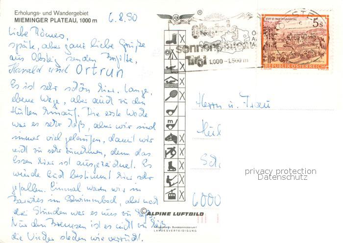 73661566 alte Postkarte Mieminger Plateau Fliegeraufnahme mit Obsteig postalisch gelaufen Erhaltung siehe scans [WerneD78] KatCode: 11390